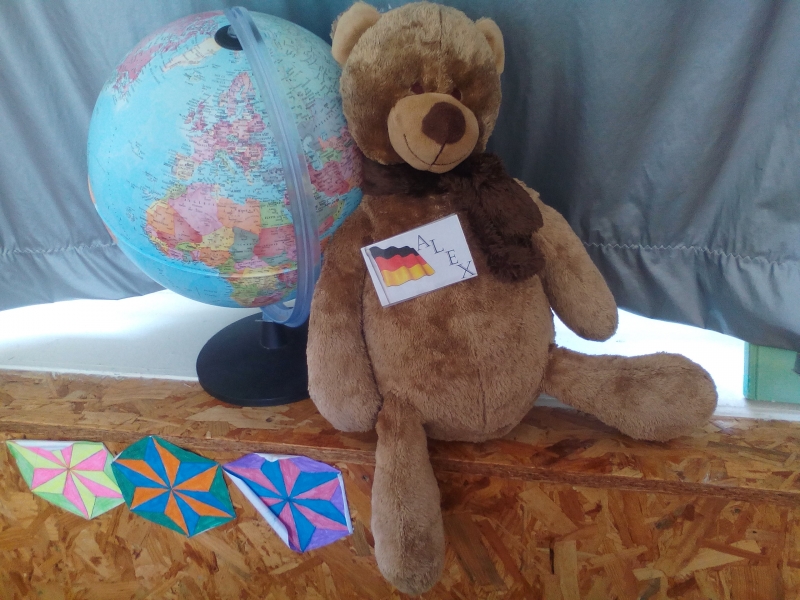 En cette dernière période de l’année, les élèves de CM2 ont accueilli un nouveau compagnon de classe ! Il s’agit de la mascotte “Bär Alex” qui les initie à l’allemand chaque lundi. L’ours est le symbole de la ville de Berlin, capitale de l’Allemagne (DEUTSCHLAND) :
