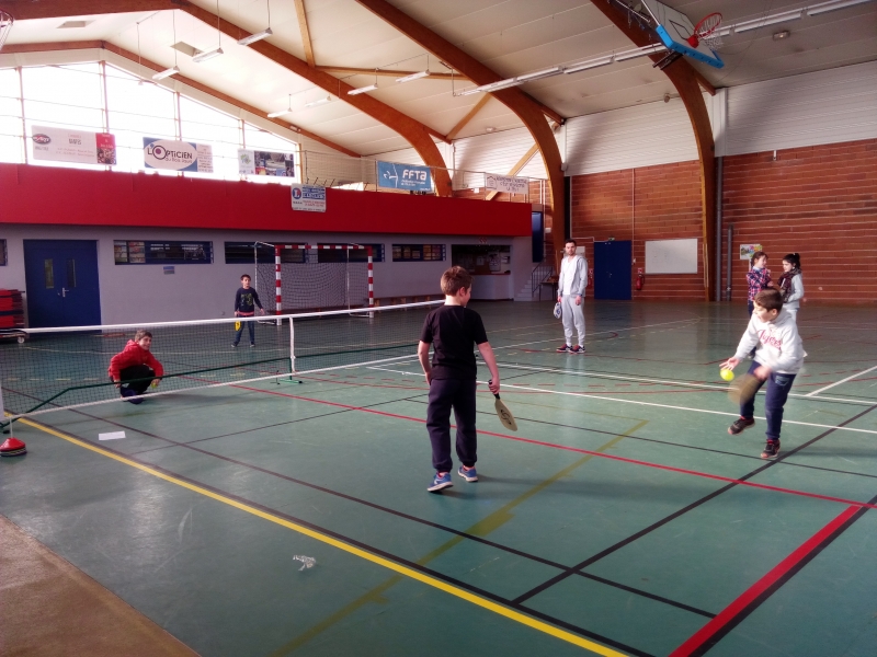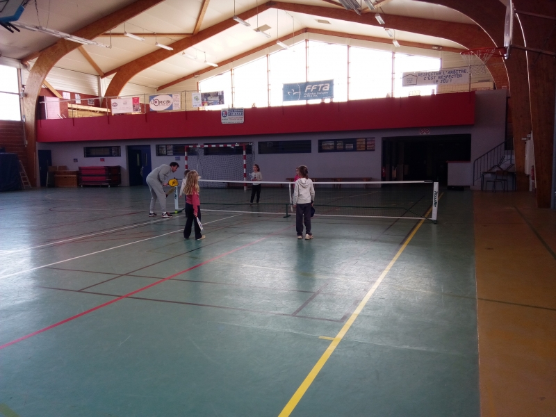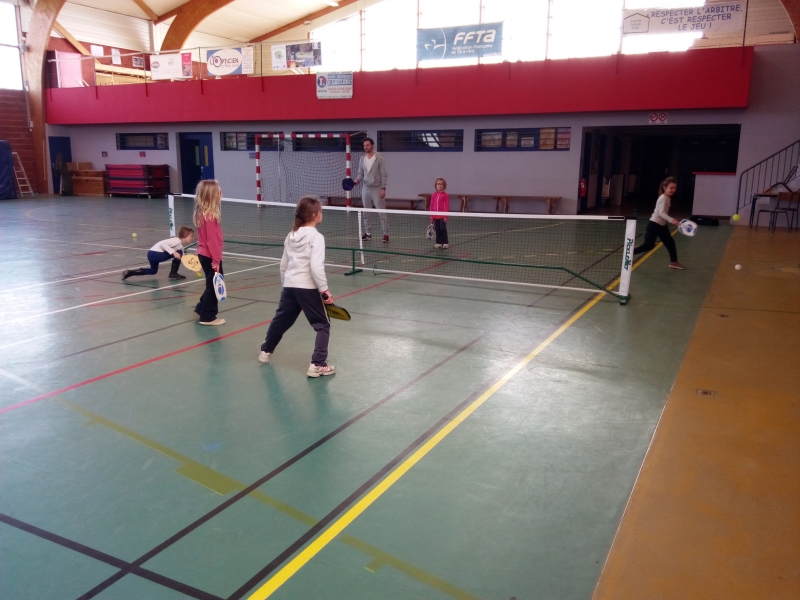 Jeudi 22 mars 2018. Tous les élèves de l’école ont eu l’occasion de pratiquer un sport des USA : le pickleball. Ce sport ressemble à du tennis léger, il est une variante du tennis traditionnel. Il est présenté comme un sport de raquette nord-américain qui combine des éléments du tennis (pour le filet), du badminton (pour le terrain) et du tennis de table (pour la raquette). Il a été inventé dans les années 1960 aux USA.